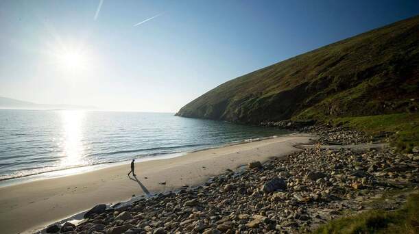 Keem Strand is bordered by cliffs and there’s a breathtaking 1.5km (0.9 mile) walk along the top of the cliffs of Benmore towards Achill Head, the most westerly point of the island.